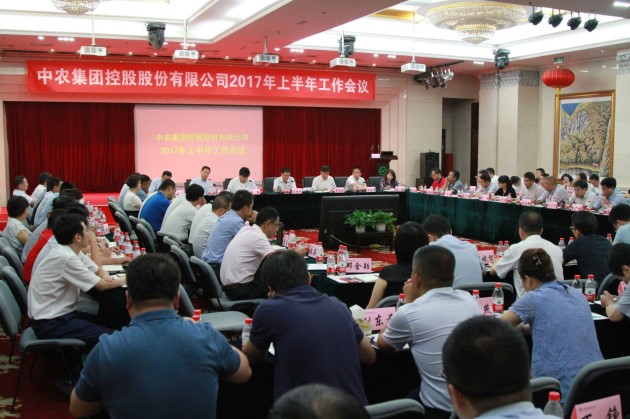 7月19日,中農集團控股股份有限公司(以下簡稱中農控股)在京召開2017年上半年工作會議。會議全面總結分析了上半年各項工作,對下半年及今后一個階段的重點工作進行了部署。中國供銷集團總經理,中農集團黨委書記、董事長兼中農控股董事長陳振平出席會議并作重要講話,中農控股班子成員及京內外各單位負責人、部分員工出席會議。中農控股總經理蘇澤文臨時因公出差未出席會議。
