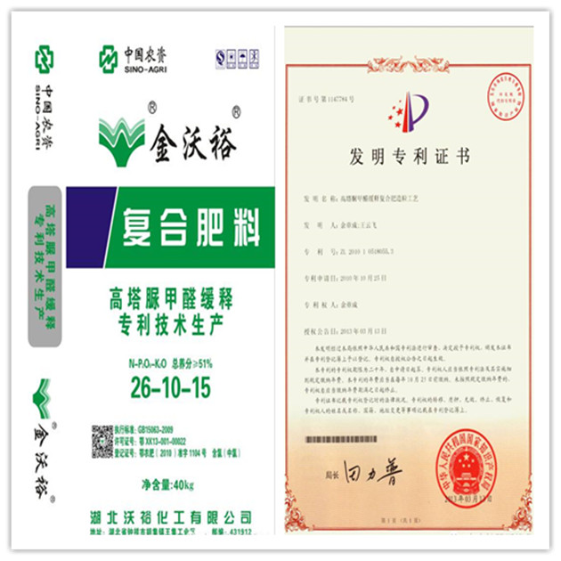 ??? 中農沃裕公司率先在全國成功研發了高塔脲甲醛緩釋肥生產工藝,且榮獲國家自主發明專利。改進高塔造粒工藝,把高塔只能生產高氮、高鉀的產品轉化為氮、磷、鉀隨意提升的先進工藝。