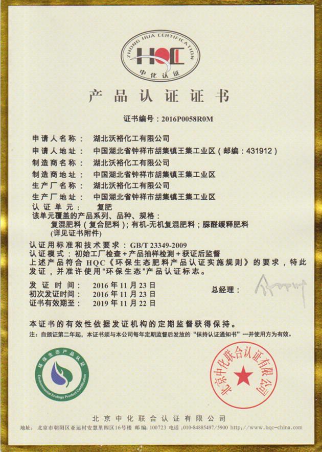 ??? 湖北沃?;び邢薰境晒Λ@得環(huán)保生態(tài)肥料產(chǎn)品認(rèn)證。湖北沃裕一直以來(lái)就非常重視肥料產(chǎn)品的質(zhì)量和安全環(huán)保性能,堅(jiān)守“四個(gè)確?!保?/p>