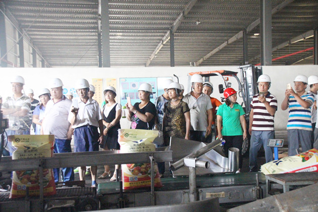 ? ? 7月17日下午,河北武邑40多位經(jīng)銷商來到新樂中農(nóng)金瑞肥業(yè)有限公司(下稱新樂中農(nóng))進(jìn)行實(shí)地參觀考察。參觀人員深入廠區(qū),參觀了新樂中農(nóng)的成品庫(kù)房、投料、生產(chǎn)、包裝的各個(gè)環(huán)節(jié),在實(shí)地參觀中真正感受到新樂中農(nóng)的實(shí)力。