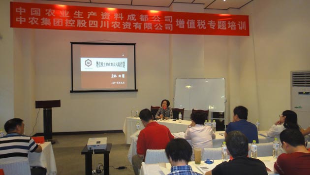 ? ? 9月9日-10日,為適應化肥恢復征收增值稅,中農集團控股四川農資有限公司(下稱四川中農)在公司本部舉辦了增值稅專題培訓,公司領導班子,各業務部門、各子公司和各分支機構負責人、財務人員及業務內勤人員參加了培訓。