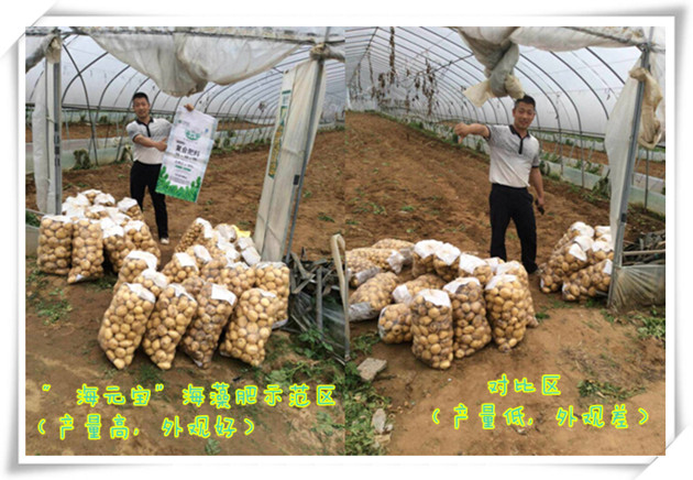 ? ? 回訪之際正是大棚馬鈴薯采收期,中農(nóng)控股農(nóng)化人員對(duì)試驗(yàn)田馬鈴薯進(jìn)行現(xiàn)場(chǎng)測(cè)產(chǎn)。經(jīng)裝袋稱重和品質(zhì)比對(duì),“海元寶”海藻肥試驗(yàn)棚收獲的35袋馬鈴薯中,一等品達(dá)15袋,對(duì)比棚24袋馬鈴薯中一等品僅為8袋。當(dāng)切實(shí)感受到“海元寶”海藻肥增產(chǎn)和提高作物品質(zhì)的突出肥效后,基地負(fù)責(zé)人對(duì)該新型肥料及其試驗(yàn)效果非常滿意,并表示以后基地用肥就用“海元寶”海藻肥,而且不僅自己用,還要在合作社內(nèi)積極推薦和推廣,帶領(lǐng)廣大社員共同致富。