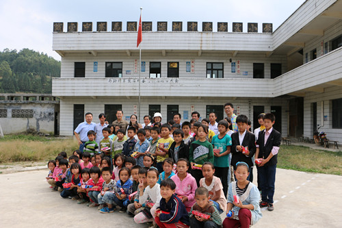 盡管一路上泥濘的山路崎嶇不平,剛啟程不久一輛車就因為路況提前“罷工”,深圳中農的愛心團隊在嚴重超載的車上擠得像面團一樣,10多里的山路,花了2個半小時,但當載滿禮物的小車蹣跚著終于到達馬路河希望小學時,早已等待多時的全體師生及其家屬們的歡呼聲,讓深圳中農的愛心團隊覺得一切都是值得的。