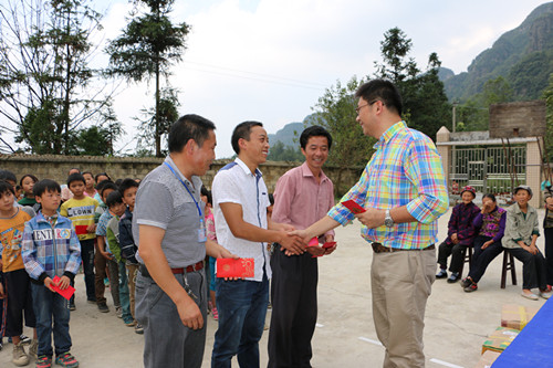 中寨鄉教委何主任、希望小學楊校長分別在會上致辭,感恩深圳中農公司十多年來對貧困山區孩子們無私奉獻的愛心,同時讓孩子們好好學習,將來成為國家有用之才,以報答深圳中農人的大愛。