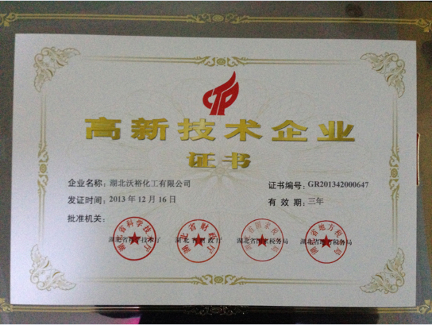 ? ? 經(jīng)湖北省科技廳、湖北省財(cái)政廳、湖北省國稅局、湖北省地稅局組織專家評審,湖北沃裕化工有限公司(以下簡稱“湖北沃裕”)最終獲評“高新技術(shù)企業(yè)”,該項(xiàng)榮譽(yù)的獲得為湖北沃裕的發(fā)展注入了新的活力。