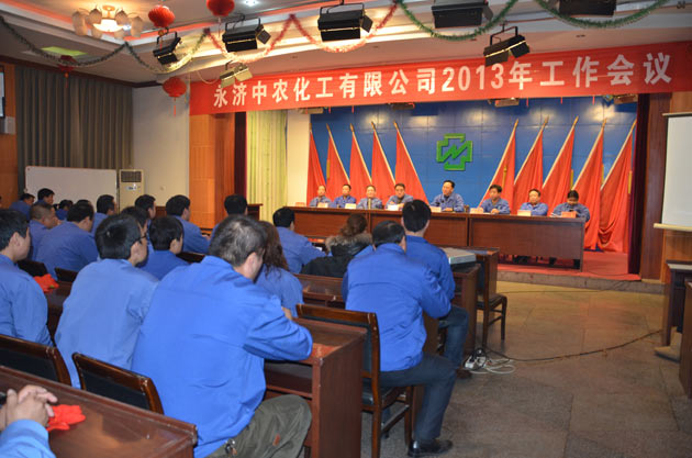 ? ? 1月29日,永濟中農化工有限公司(簡稱“永濟中農”)召開2013年工作會議。永濟中農領導班子成員、班組長以上人員、先進集體代表和先進個人代表參加會議。會議由永濟中農總經理劉乃倉主持。? ? 會議首先傳達了中農控股2013年工作會議精神,并在全面總結永濟中農一年來工作的基礎上,認真分析存在的問題,研判目前經濟形勢的新變化、新趨勢,規劃新一年的工作藍圖。? ? 會議指出,一年來,永濟中農按照“調整產品結構、轉變發展方式”的總體要求,面對全球經濟危機的嚴重沖擊,國際國內需求疲軟和原料價格持續上漲等前所未有的嚴峻局面,正確把握形勢,妥善應對市場變幻的大環境,不斷創新工作思路和舉措,適時調整經營思路和方針,通過不懈的艱辛努力,較好地調整完成了年度目標任務。????會議強調,2013年的工作目標已經確定,要求全體干部員工繼續發揚愛崗敬業精神,認真履行職責,不斷創新工作方法,切實加強責任意識和危機意識,切實抓好制度的落實,要堅定不移地走創新之路,以新思路、新舉措有效應對當前嚴峻復雜的市場形勢,努力完成好2013年的各項目標任務。????會上,對20個先進集體和71名先進個人進行了表彰。