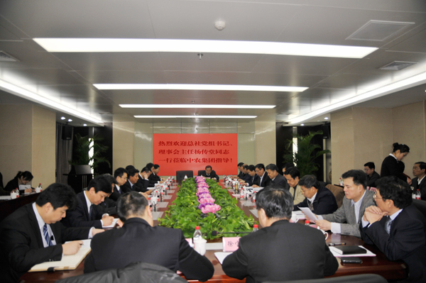 ?? ?2月20日,中華全國供銷合作總社黨組書記、理事會主任楊傳堂,總社理事會副主任、中國供銷集團董事長顧國新,黨組成員、理事會副主任戴公興,總社辦公廳主任湯益誠,經濟發展與改革部部長閔學沖,財會部部長原梅生,審計局局長潘種樹,以及中國供銷集團有限公司總經理、黨委副書記侯順利,黨委副書記楊鳳祿等一行蒞臨中農集團公司調研指導工作。