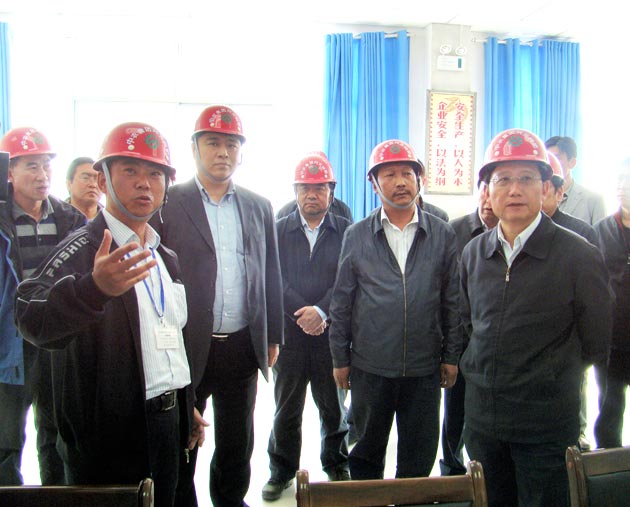 圖為興元公司副總經(jīng)理紀(jì)律向青海省委書記強(qiáng)衛(wèi)介紹公司情況。