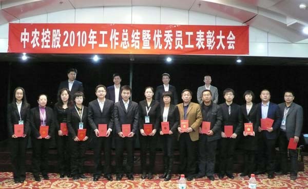 ??? 1月7日上午,中農控股2010年工作總結暨優秀員工表彰大會在東四樓會議室召開,中農集團公司副總裁王春林、公司總經理羅德強、副總經理王全、副總經理朱聯,控股企業代表及本埠全體員工140余人參加會議,會議由王全副總經理主持。??? 會議中,羅德強總經理對中農控股2010年度工作做了總結報告,他將2010年形容為戰斗的一年,將經營工作比作正面戰場,將公司治理和管理工作比作背后的戰場,將投資工作比作新戰場,對中農控股全年的工作進行了全面總結和分析。同時,羅總代表公司領導向廣大員工一年來辛勤工作表示感謝,對公司本部經營部門、管理部門及各控股企業取得的工作成績給予了肯定,也指出了工作中存在的問題和不足。最后羅總以“四大意識”“兩個加強”為主題對控股公司2011年的工作提出要求。??? 另外,王全副總經理在會上宣讀了《2010年中農控股優秀員工表彰名單》和《成長征文獲獎名單》。會議評選出2010年度優秀員工16人,公司領導為獲得表彰的同志頒發了榮譽證書,海外事業部陳偉代表優秀員工做了獲獎發言。